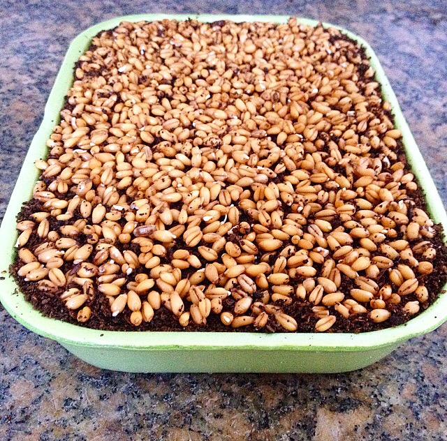 Após germinar o trigo (mesmo processo da germinação do girassol com casca de outro post aqui).