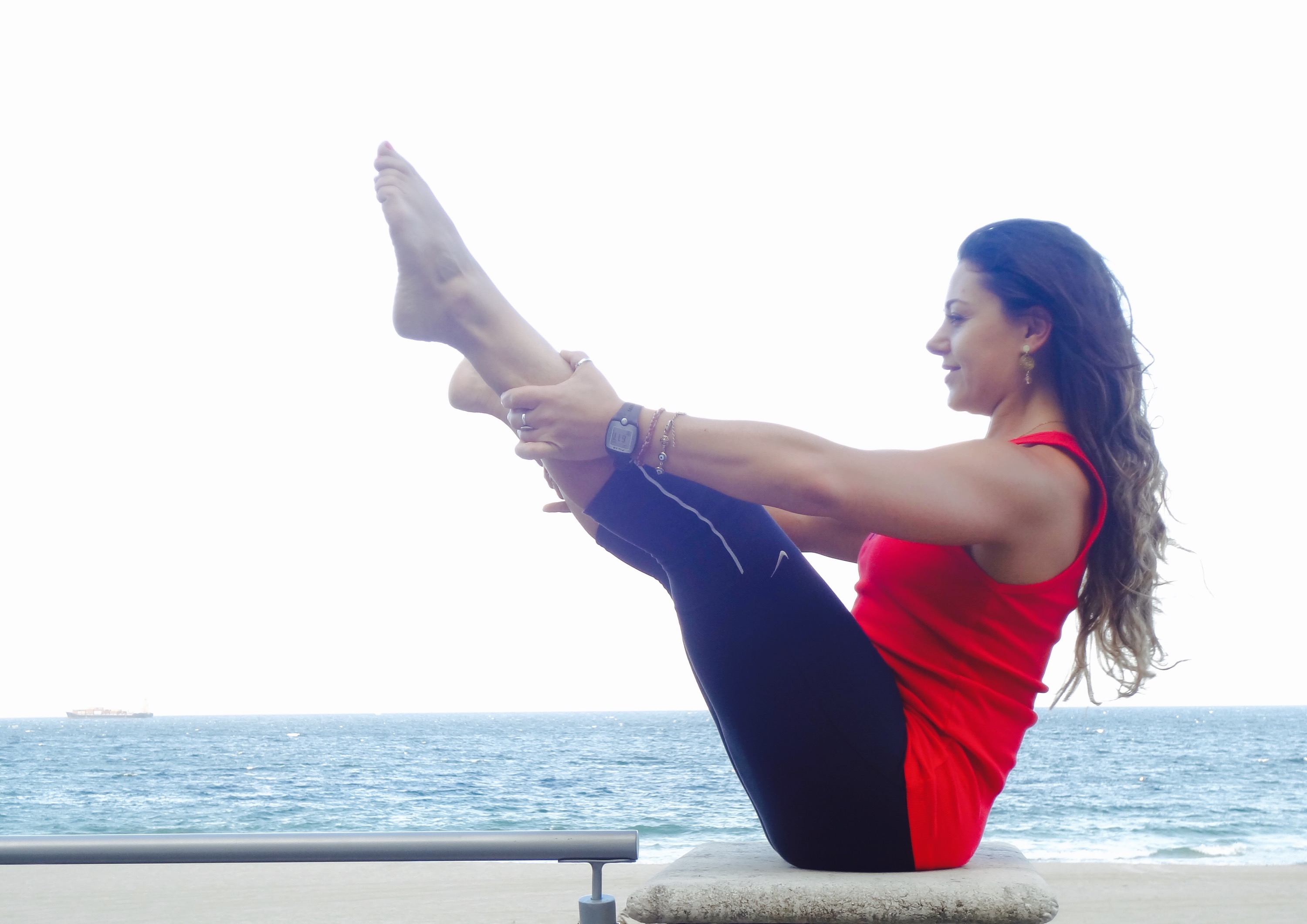Roll over no Mat. Acho que é um exercício gostoso de fazer porque alonga toda cadeia posterior, mobiliza as vértebras da coluna vertebral, ativa muito os abdominais e o tríceps , exigindo muito controle e precisão para ser executado.
