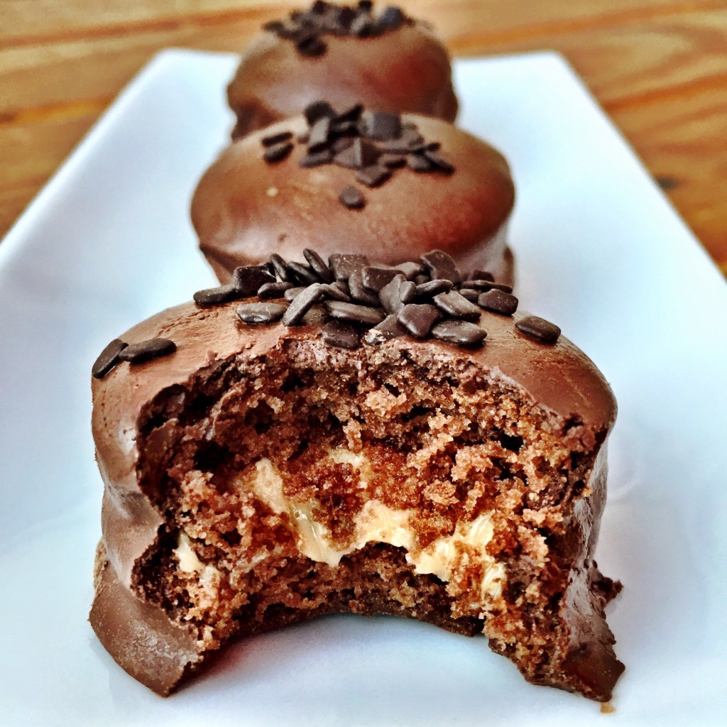 Misture os ingredientes líquidos e una tudo aos secos. Coloque a massa em um tabuleiro com papel manteiga untado e leve ao forno 180 graus por 35minutos (ou ate o palito sair sequinho). Corte cada um com cortador redondo de 6cm de diâmetro e recheie com doce de leite sem açúcar (para quem quiser a versão sem lactose pode fazer com leite de amêndoas). Depois mergulhei em chocolate 70% derretido em banho maria (procure a versão sem lactose quem preferir).