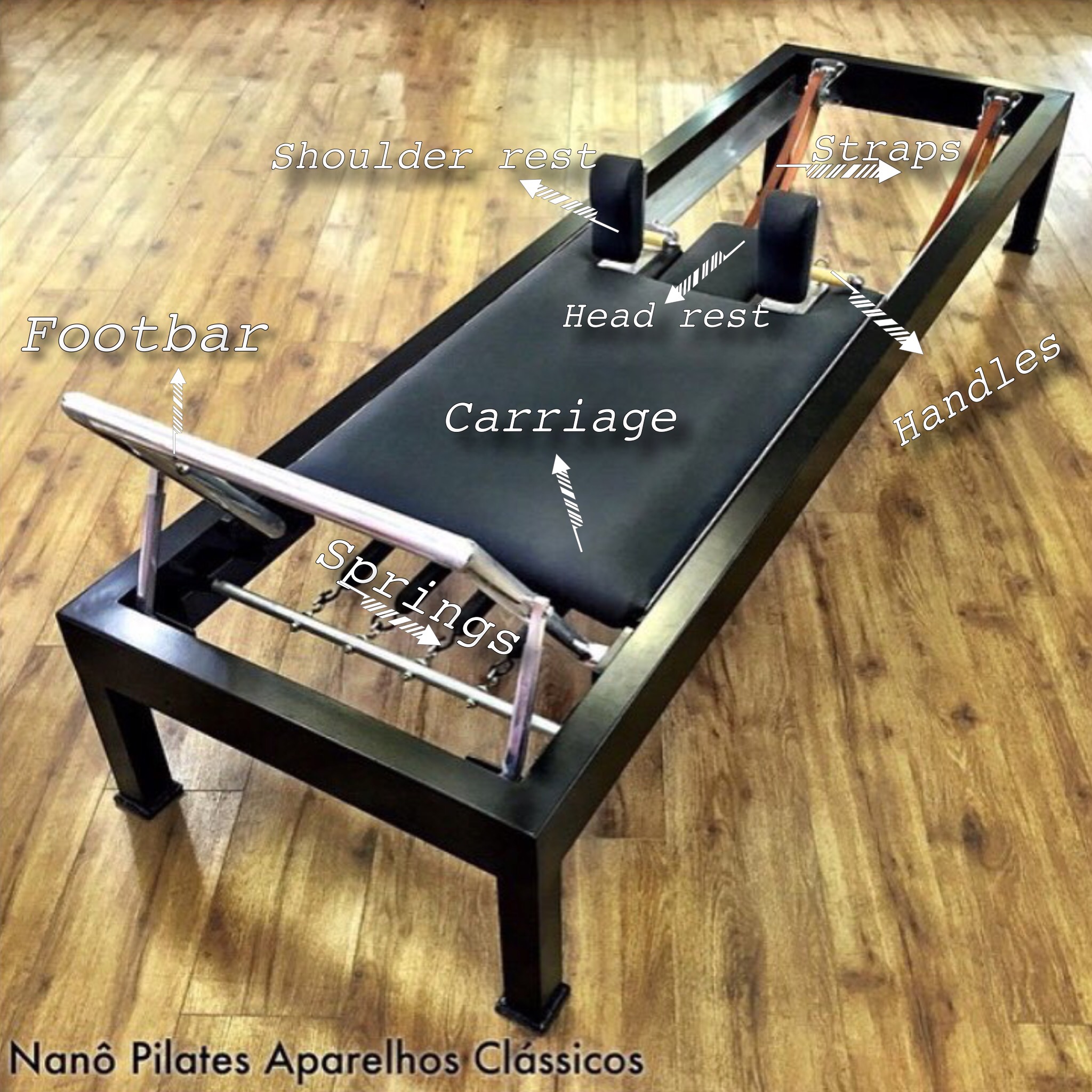 Basicamente funciona assim: deitamos no carrinho (carriage), apoiamos os pés na footbar e empurramos , fazendo movimentos de abrir e fechar através das molas. Ao vermos os movimentos serem executados nos parece que o objetivo é apenas o fortalecimento de membros inferiores, das pernas. Mas o trabalho é bem mais complexo e profundo do que isso, como tudo em Pilates. 🙂