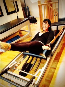 – O abdomen deve estar conectado para dentro e para cima com a ajuda do músculo Transverso Abdominal, como se ele quisesse tocar a coluna lombar, indo em direção ao carrinho e alongando em direção à cabeça ao mesmo tempo, o alongamento axial que estará presente a todo momento. Essa posição é um comando em Pilates que chamamos de scoop.