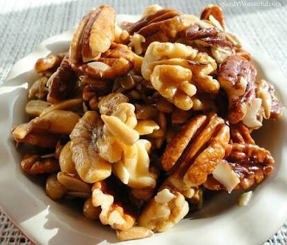 2 xícaras de nozes cortadas ao meio e picadas (você pode usar as nozes pecã também)