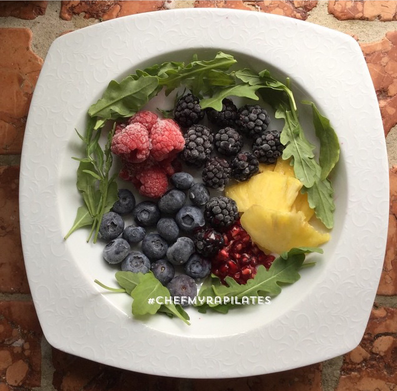Então minha sugestão para hoje é um suco antioxidante de frutas vermelhas (berries) com rúcula, mas você pode começar colocando uma rúculazinha no seu suco predileto também.